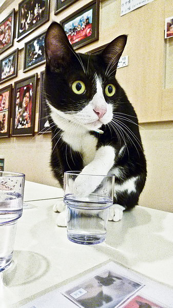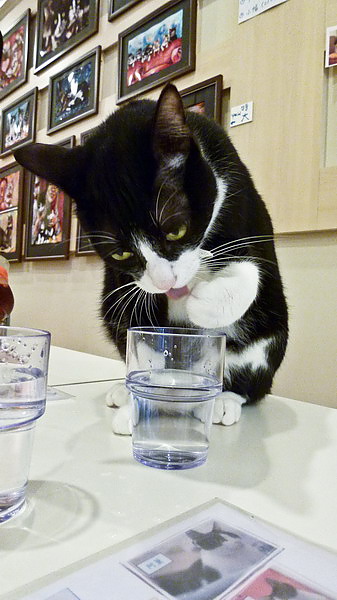 另外附上喜歡用左手沾水喝的貓XD 那杯水其實是要給我的... 但被搶先了orz 他的表情很有趣!
